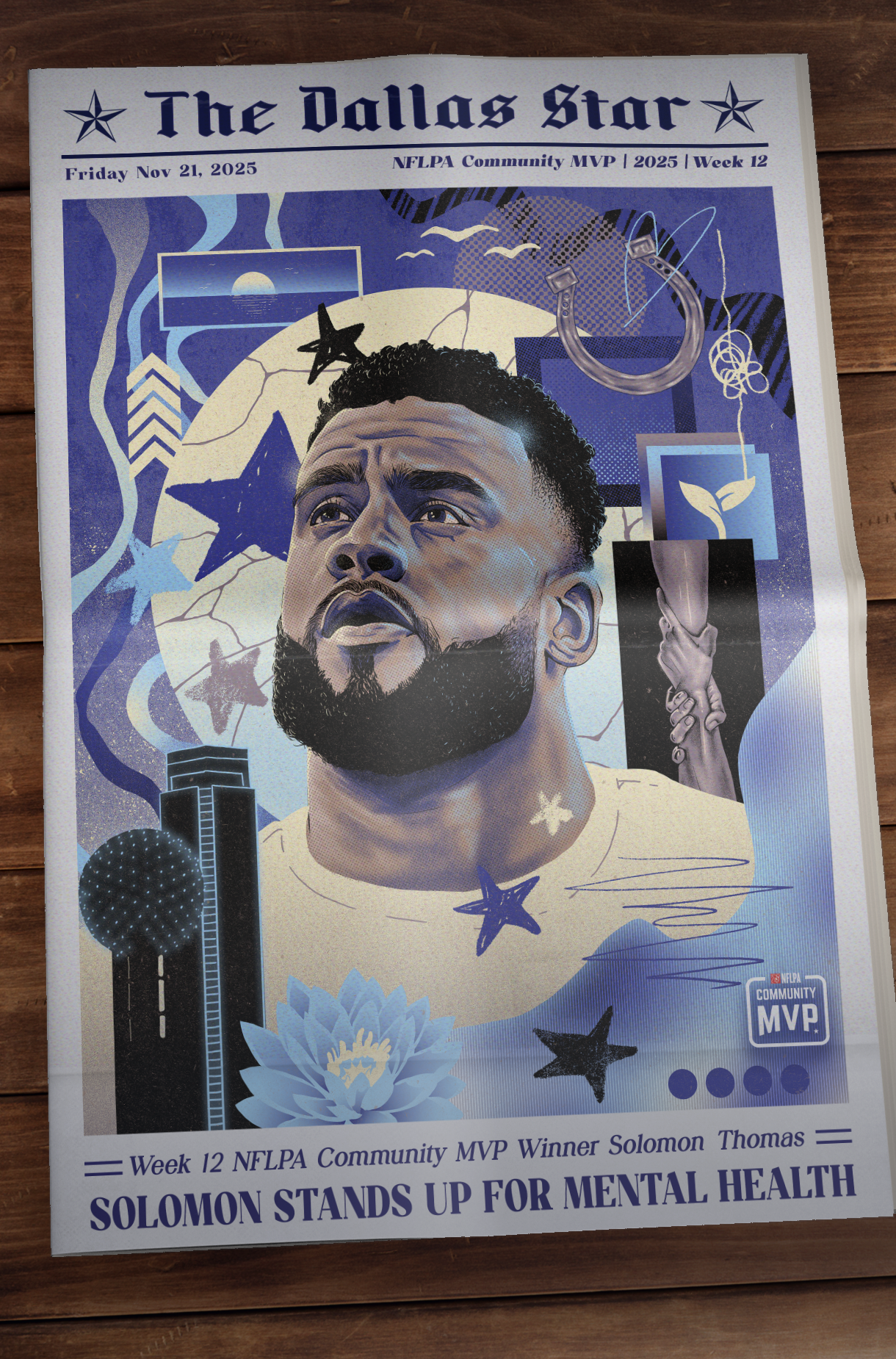 Solomon Thomas led a powerful week of service and healing in Dallas, guiding students through an open conversation on mental wellness, uniting teammates to fight food insecurity and serving as a stabilizing force for his locker room and community during a time of tragedy.