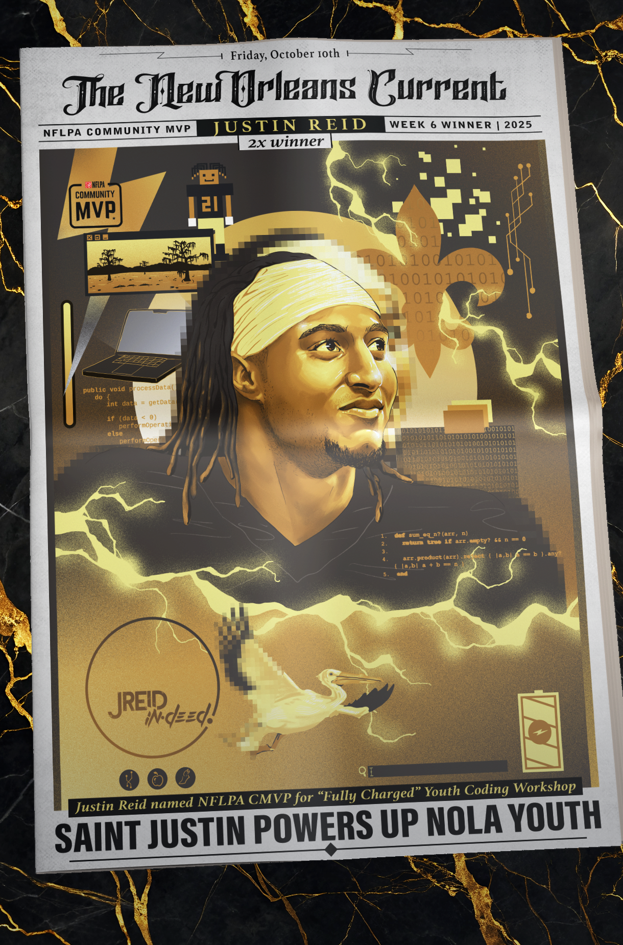 Justin Reid launched his foundation’s "Fully Charged" program with a hands-on tech workshop at the New Orleans Public Library, empowering local teens to explore coding, game design and digital storytelling while building skills for the future.