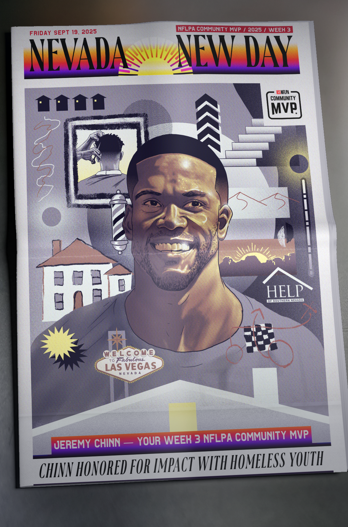 Jeremy Chinn hosted a season kickoff celebration in Nevada for 90 teenagers experiencing homelessness that included dinner, a live DJ, interactive football, free haircuts, a meet-and-greet and essential items for each attendee.