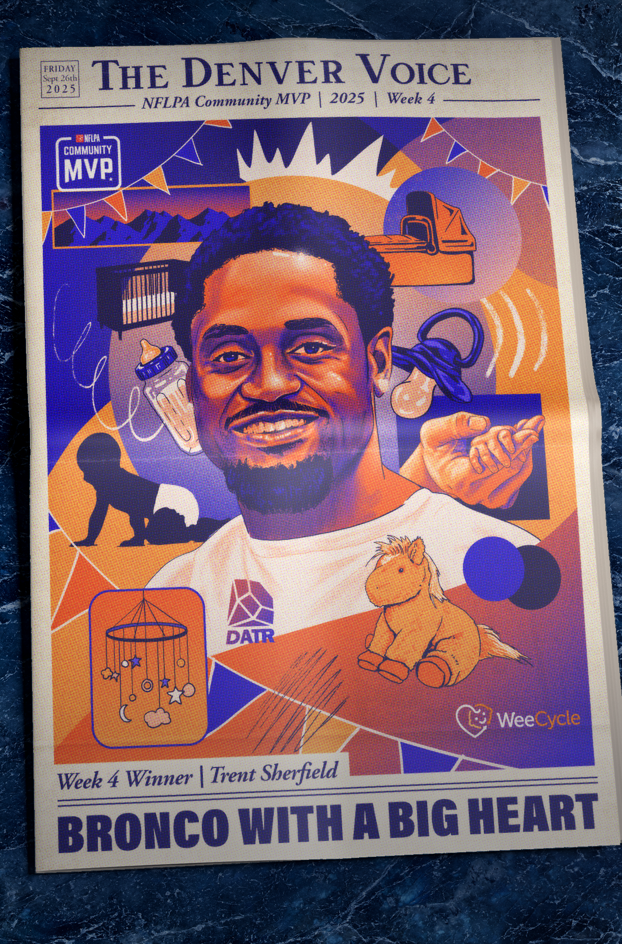 Trent Sherfield teamed up with WeeCycle during Diaper Awareness Week to support Denver families in need, personally handing out diapers, wipes, baby food and formula alongside his wife and kids.