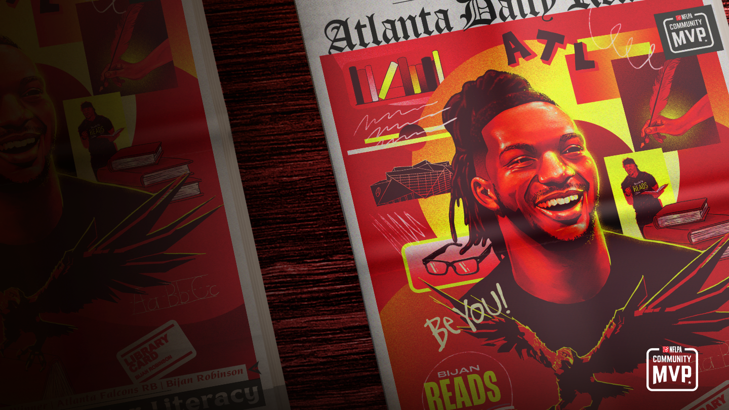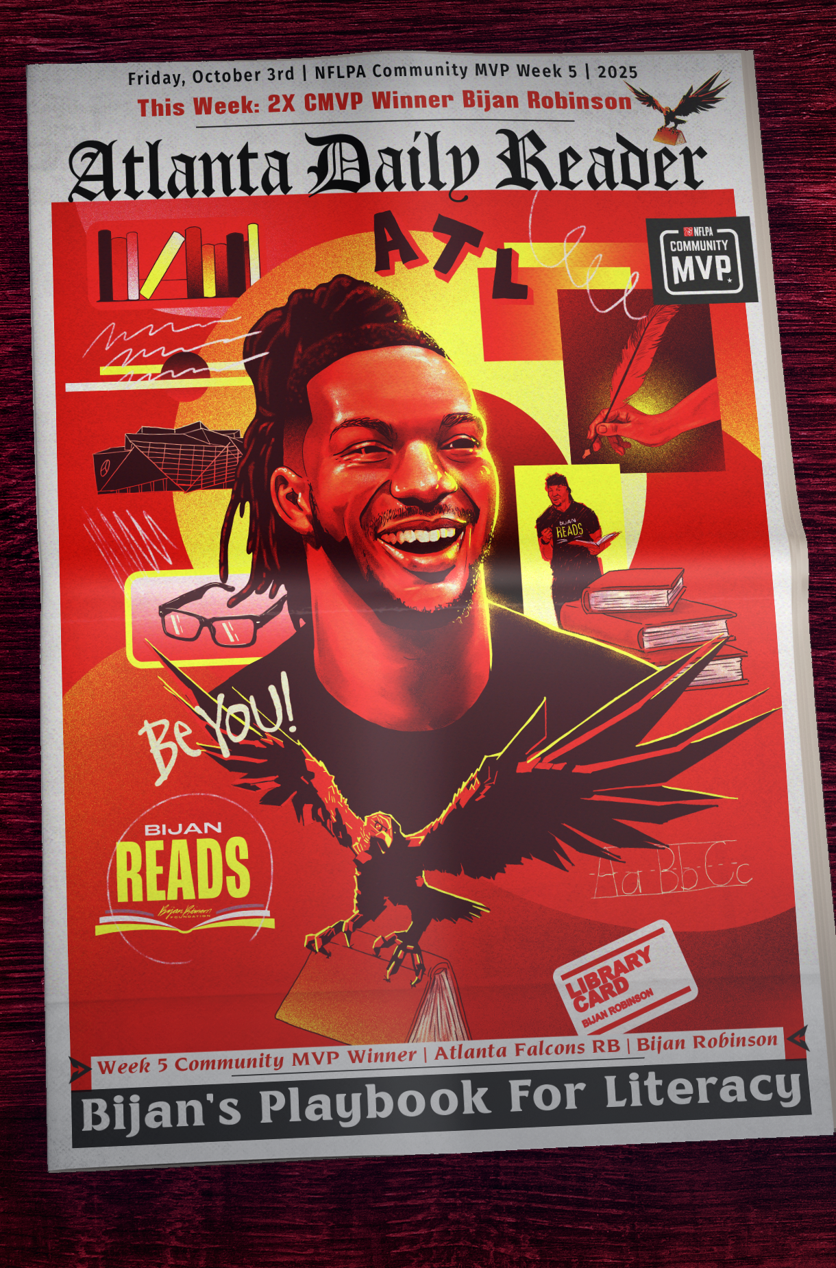 Bijan Robinson hosted a book fair at Mercedes-Benz Stadium for 7,700 kids from the Atlanta Public Schools system and launched his foundation's BijanReads program to help improve literacy rates.