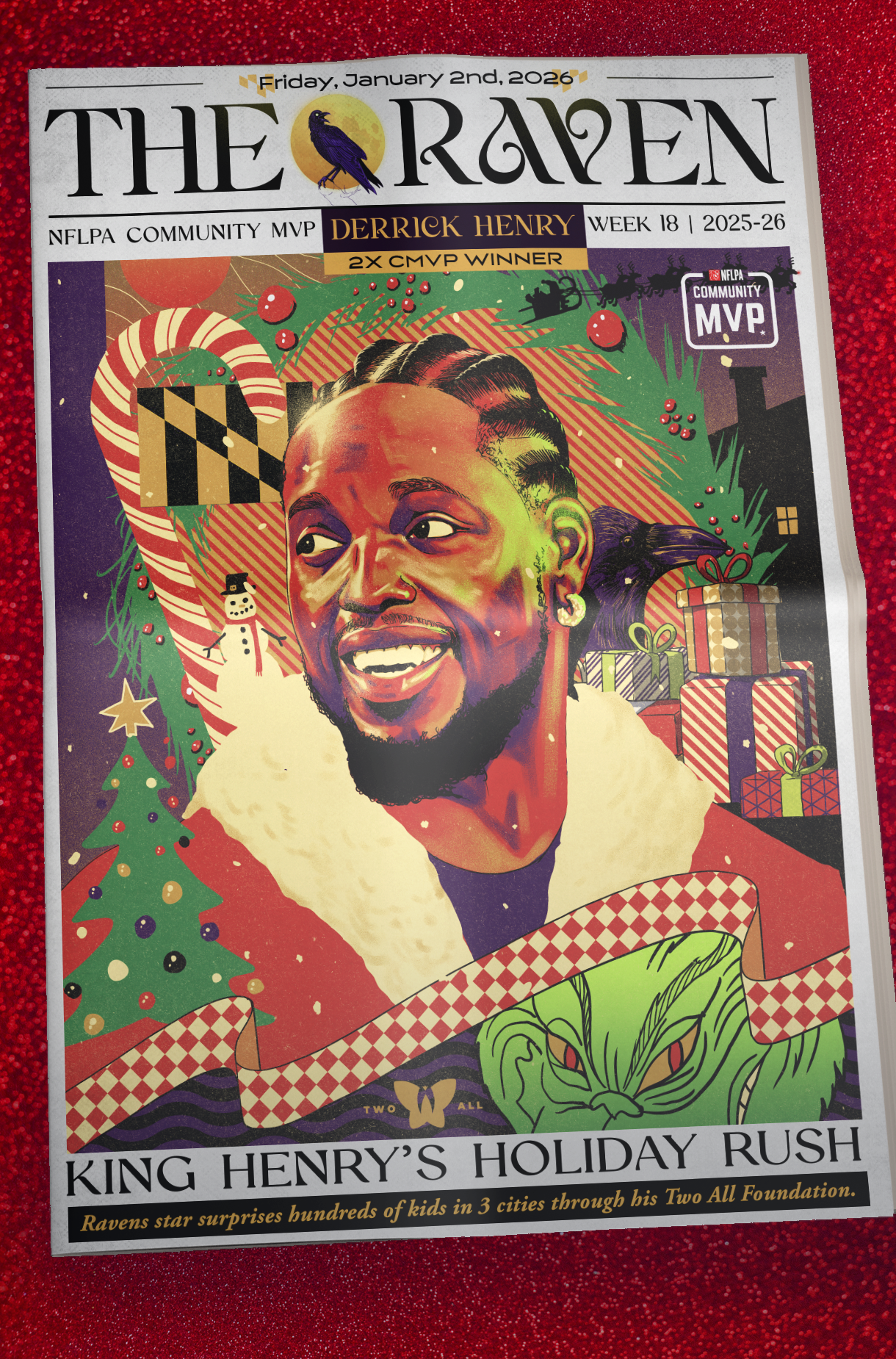 Derrick Henry, through his Two All Foundation, spread holiday joy across three cities, creating meaningful moments for children and families through gifts, experiences and community connection.