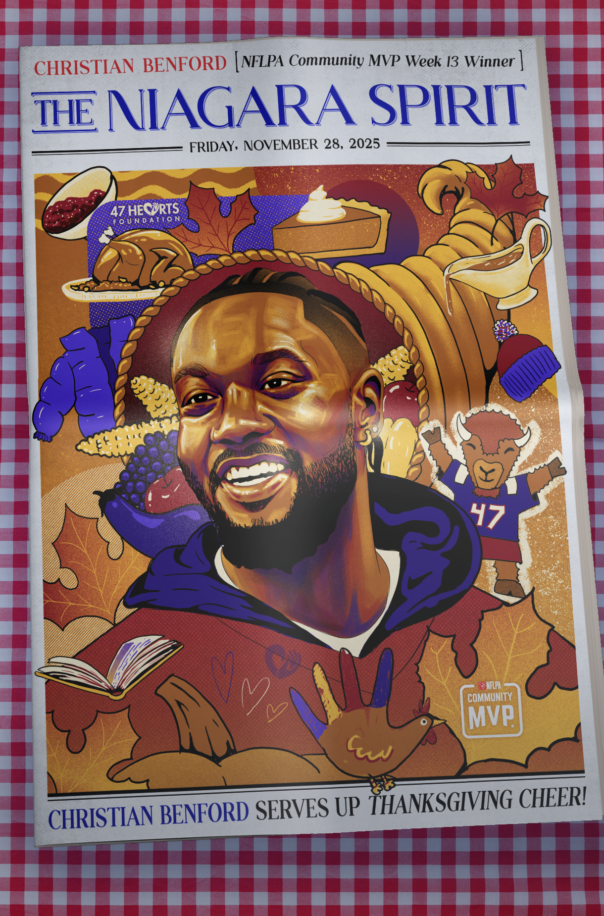 Christian Benford hosted 300 local families for a meaningful Thanksgiving Celebration through his 47 Hearts Foundation, providing them with warm meals and essential winter care kits.