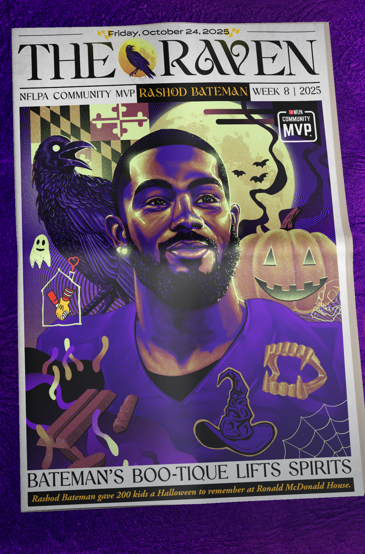 Rashod Bateman hosted his fourth annual “Bateman BOO-tique” at a local Ronald McDonald House, bringing Halloween fun to more than 200 pediatric patients and their families.